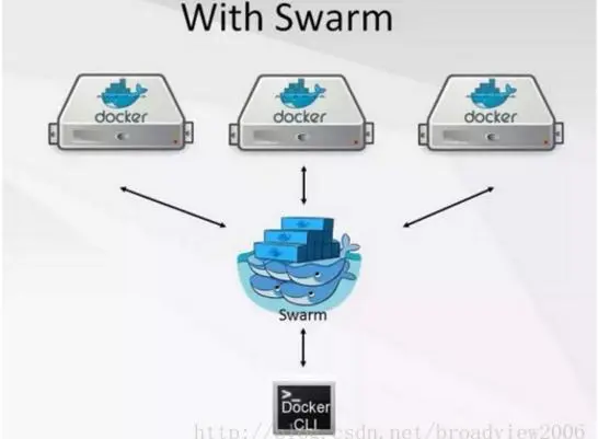 Docker Swarm的最初目标是将一些独立的Docker主机变成一个集群,如下图所示,我们通过简单的Docker命令行工具就能创建一个Swarm集群。