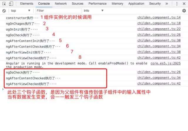 当我们监听了OnChanges钩子。 一旦检测到该组件(或指令)的输入属性发生了变化,Agular就会调用ngOnChanges()方法