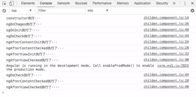 每个接口都有唯一的一个钩子方法,它们的名字是由接口名再加上ng前缀构成的。比如,OnInit接口的钩子方法叫做ngOnInit, Angular在创建组件后立刻调用它