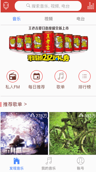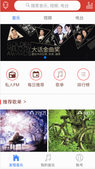 并没有完全实现所有功能,毕竟网易云音乐功能还是蛮多的。有些API不是很全(或者我没看明白),有些数据会有重复。点击没反应的都是还未实现的功能。