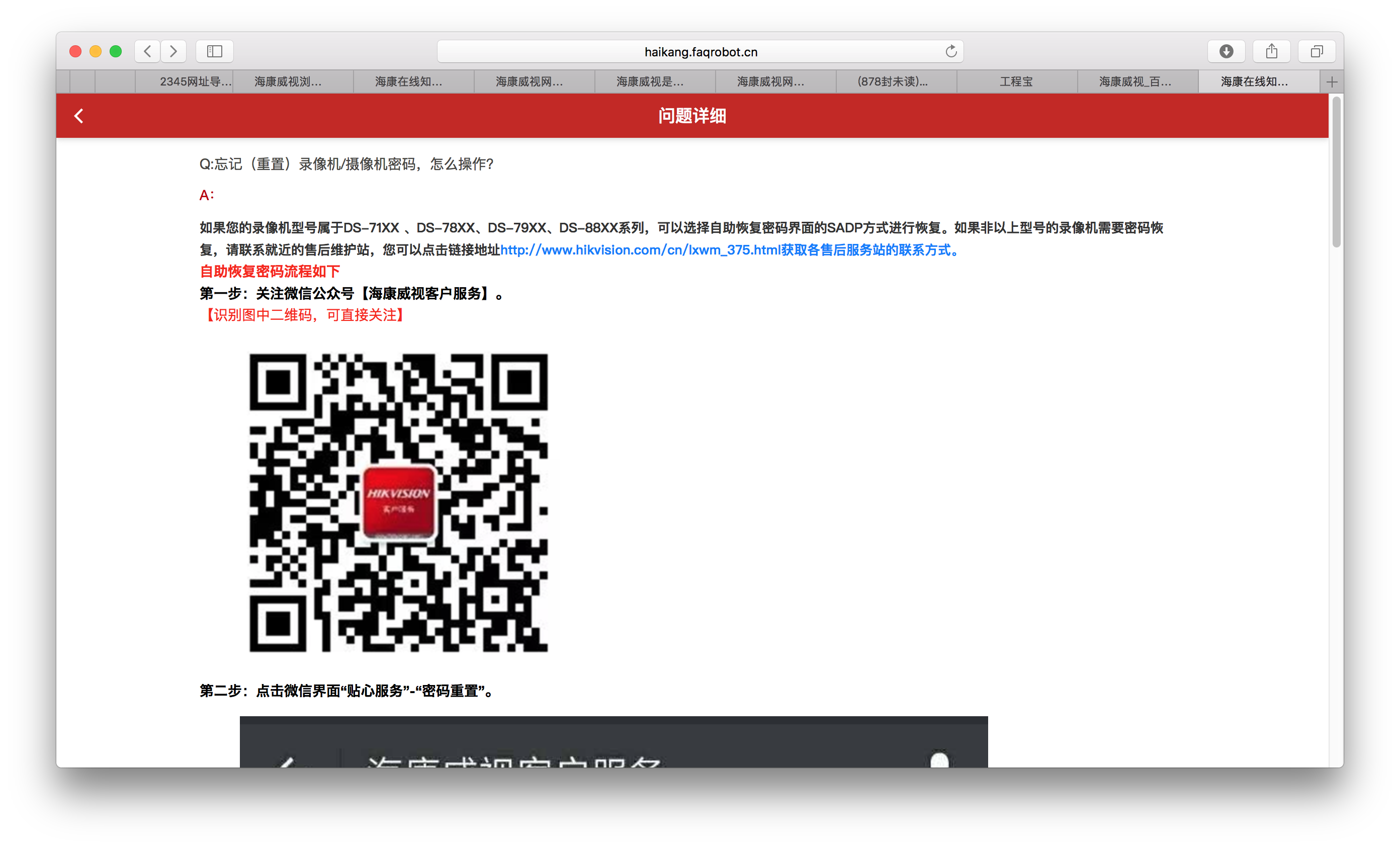 方法来源:海康官网-服务支持-在线知识库-常见高频问题-设备密码恢复-常见问题解答-忘记(重置)摄像机/录像机密码怎么操作? 网址