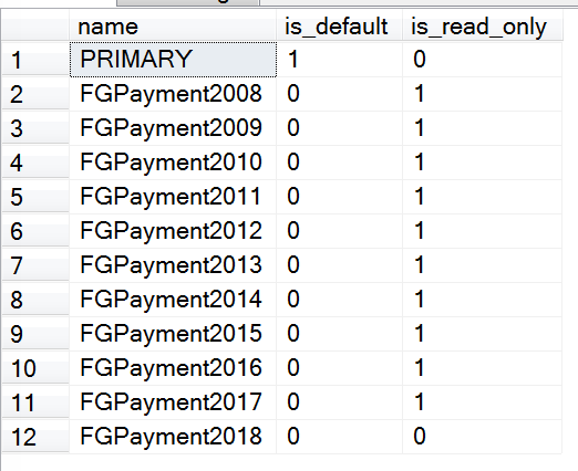 ALTER DATABASE [Payment] MODIFY FILEGROUP [FGPayment2018] READ_WRITE;