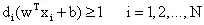 超平面的公式为。公式中的w为可以调整的系数向量,b为bias。注意我们的表达习惯,所有的向量都是列向量,所以在第一项的内积中向量w需要进行转置。