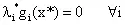互补性条件有着重要的意义。它说明了当时,x*是处于可行域的内部的,这时不等式约束并不起作用,此时