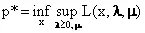 对偶函数产生了原问题(1)最优值p*的一个下界,也就是说,对于任意的λ≥0和任意的μ来说,有: