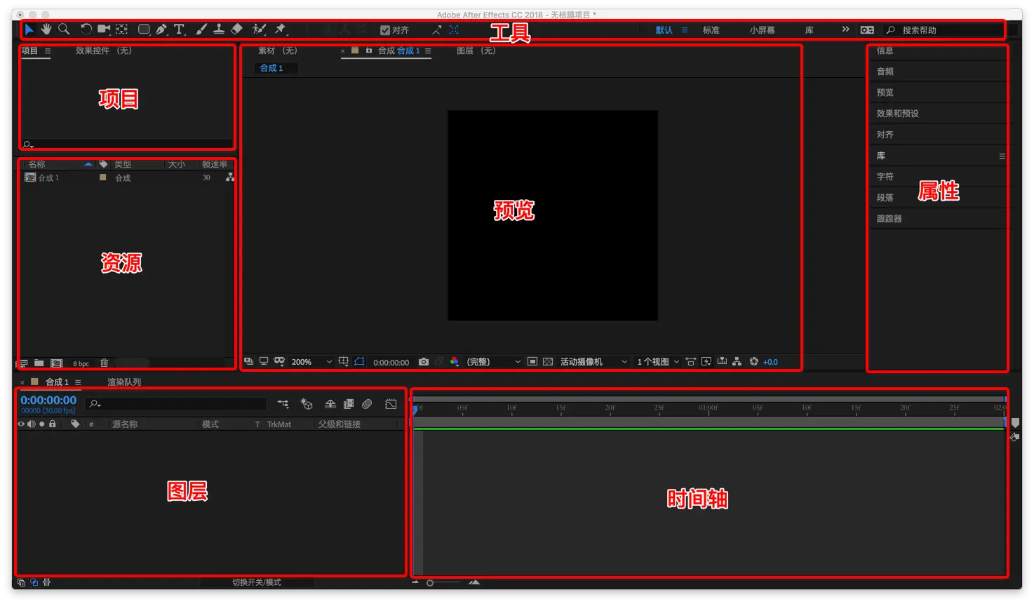 - 资源: 导入到 AE 中的所有外部资源如图像等在这里进行统一管理