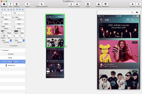 Flinto 界面跟 Sketch 也非常相似,能够快速实现各种滚动、转场、点击反馈等效果,适合模拟多个页面、场景复杂的交互流程,学习成本低。缺点是复杂的动效难以实现,价格略贵且试用期短。