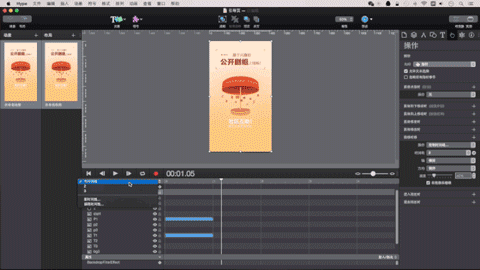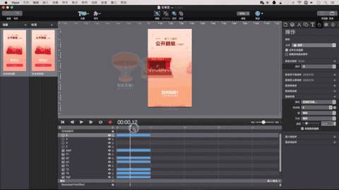Hype 号称无代码动效神器,像 AE 一样使用时间轴来设置动画。动画效果在 PC、Mobile、Pad 端都可以直接预览,也可以导出视频或者 GIF。3.0 版还有物理特性和弹性曲线,可以实现更强大的动画效果。