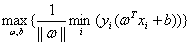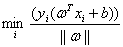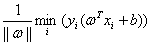 所以对于一个超平面(ω,b)我们可以得到它到给定训练集的间隔为: