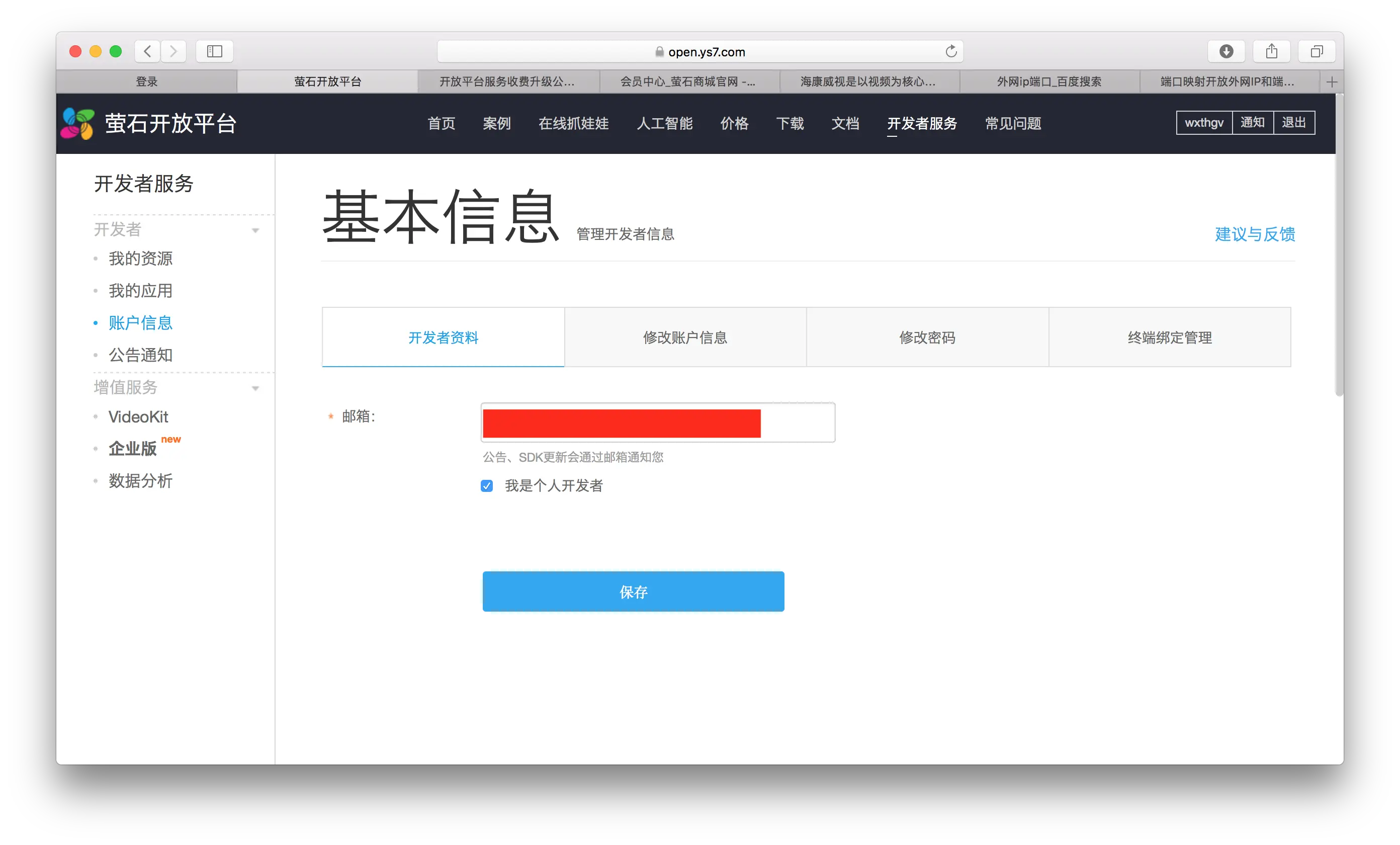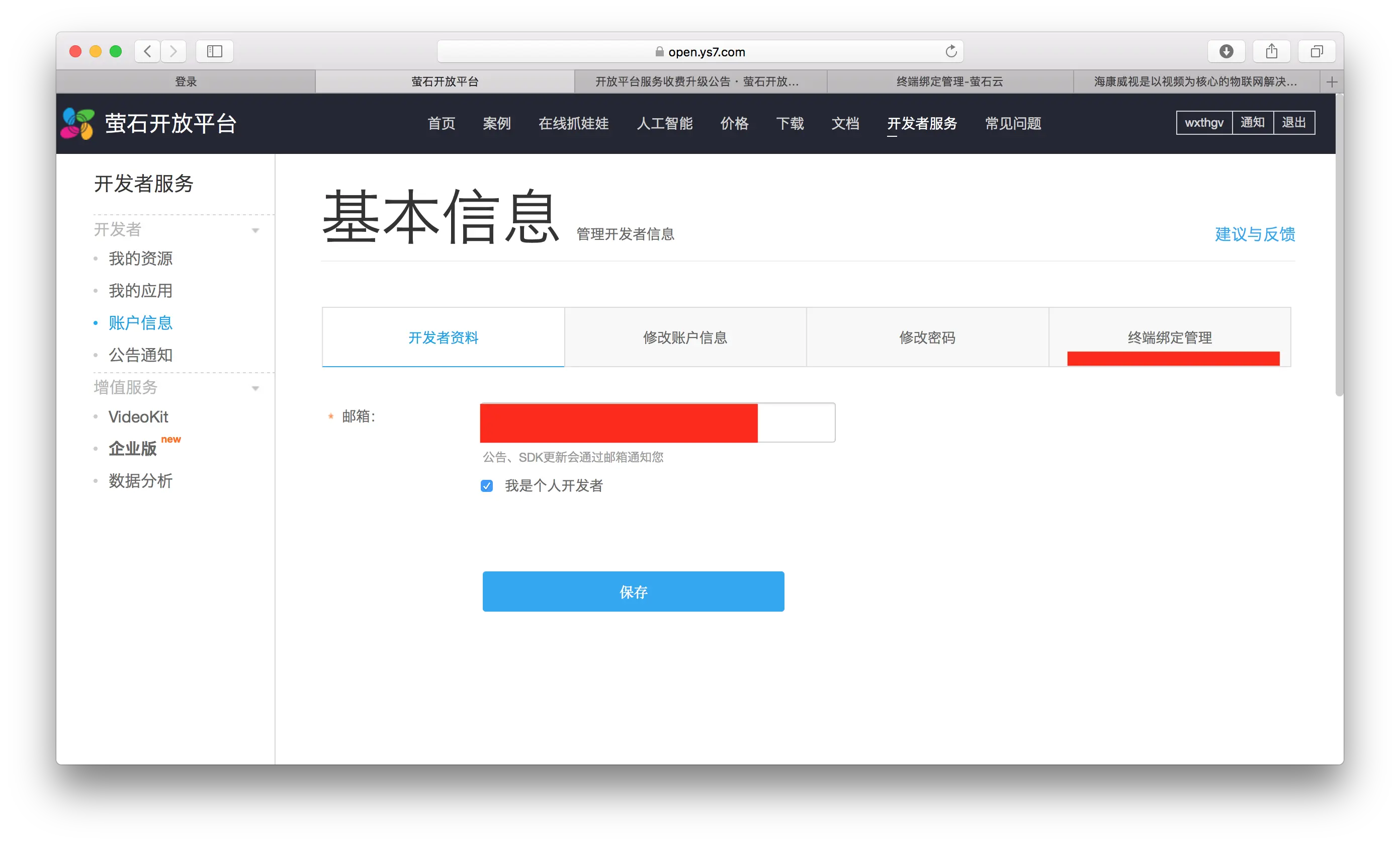 用设备序列号就可以绑定了 萤石云app账号和萤石云开发者账号是同一个账号,而且设备绑定也是互通的,在app里绑定了也是可以的,开发者平台是可以看到的。 这里会出现被其他账号绑定的情况,萤石云有转移设备功能。具体在萤石云app里面有这个功能。