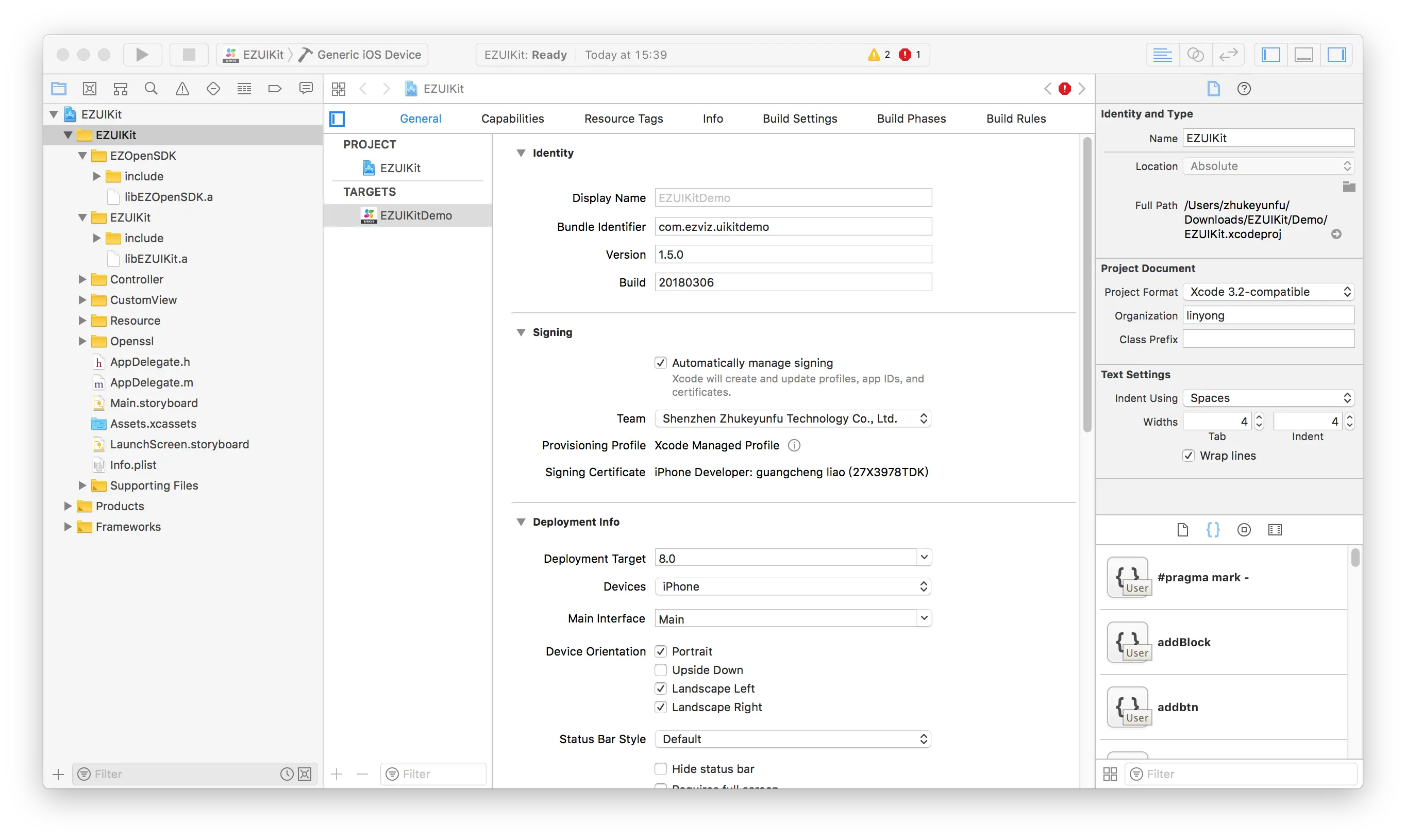 删掉EZOpenSDK和EZUikit这两个文件夹
