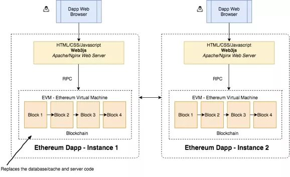 从图中可以看到,网页通过(HTTP上的)远程过程调用(RPC:Remote Procedure Call)与区块链节点进行通信。 web3.js已经封装了以太坊规定的全部RPC调用,因此利用它就可以与区块链进行交互,而不必手写那些RPC请求包。使用 web3.js的另一个好处是,我们可以使用自己喜欢或擅长的前端框架来构建出色的web应用。