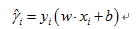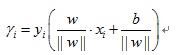 对于给定的训练数据集T和超平面(w,b),定义超平面关于样本点(x_i,y_i)的函数间隔为