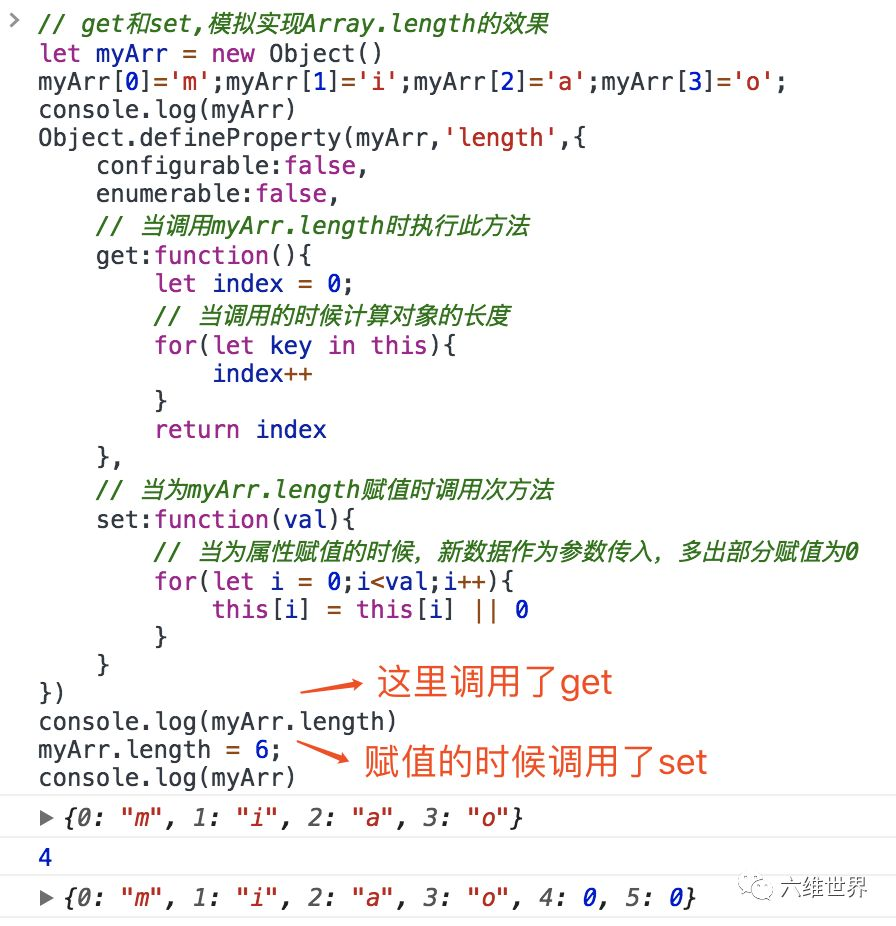 如果像我们刚才那样定义属性,length就是会被遍历出来,这样会给我们的使用造成很大麻烦,这样的属性是如何被定义的?这就要用到Object.defineProperty