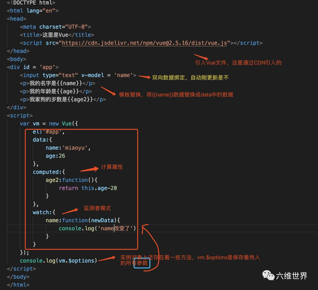 先看一下Vue的样子,关于Vue的使用大概就是这样婶儿的:
