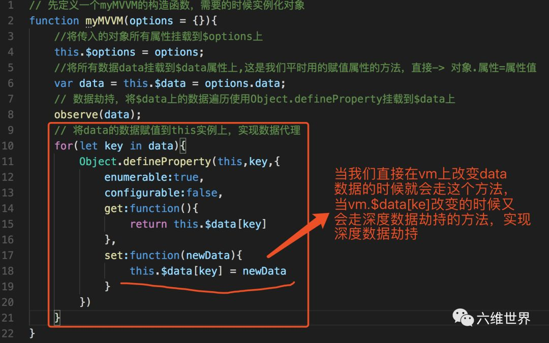 在我们平时Vue的使用习惯中,调取数据基本不会用到Vue.$data.name,而是直接使用Vue.name,这样我们就需要用Vue来代理Vue.$data,我们要把Vue.$data的数据重新绑定在Vue上