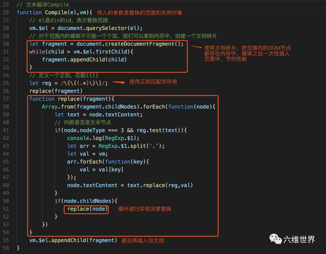 在我们将所有的数据都绑定到实例化对象之后就要开始模板编译,将{{data}}中的数据都替换为真实的数据