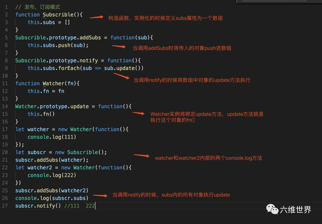 订阅就是将想要监控的函数push进数组,发布就是notify让数组内对象的方法执行