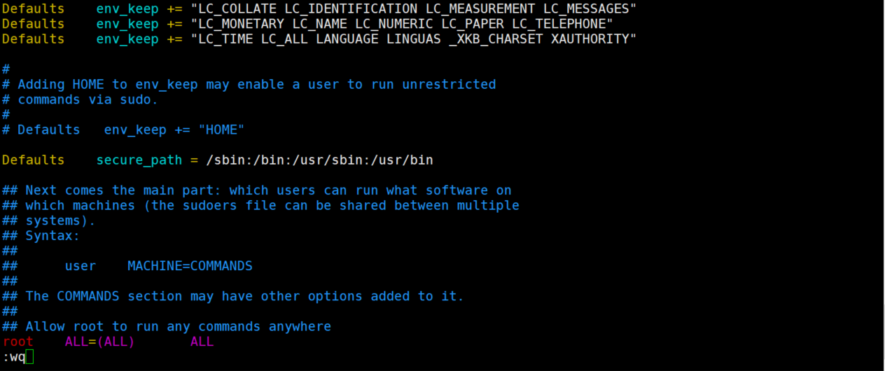 sudo命令的授权管理是在sudoers文件里的。查找sudoers