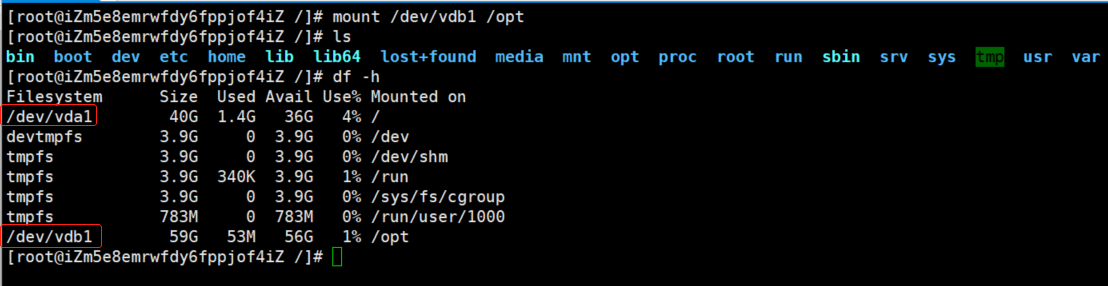 [root@linuxidc ~]# mount /dev/vdb1 /opt