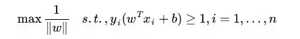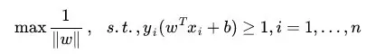 这个目标函数便是在相应的约束条件下,最大化这个1/||w||值,而1/||w||便是几何间隔