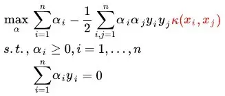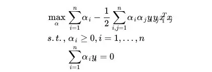 此外,由于这个问题的特殊结构,还可以通过拉格朗日对偶性(Lagrange Duality)变换到对偶变量 (dual variable) 的优化问题,即通过求解与原问题等价的对偶问题(dual problem)得到原始问题的最优解,这就是线性可分条件下支持向量机的对偶算法,这样做的优点在于:一者对偶问题往往更容易求解;二者可以自然的引入核函数,进而推广到非线性分类问题。
