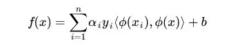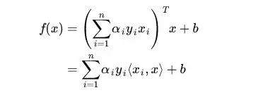 换言之,在进行分类的时候,遇到一个新的数据点x,将x代入f(x) 中,如果f(x)小于0则将x的类别赋为-1,如果f(x)大于0则将x的类别赋为1。