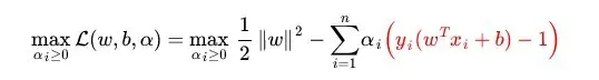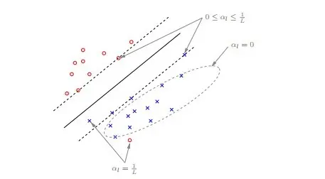 ,而虚线间隔边界上的点则是支持向量。由于这些支持向量刚好在虚线间隔边界上,所以它们满足