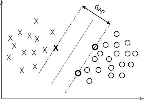 对一个数据点进行分类,当超平面离数据点的“间隔”越大,分类的确信度(confidence)也越大。所以,为了使得分类的确信度尽量高,需要让所选择的超平面能够最大化这个“间隔”值。这个间隔就是下图中的Gap的一半。