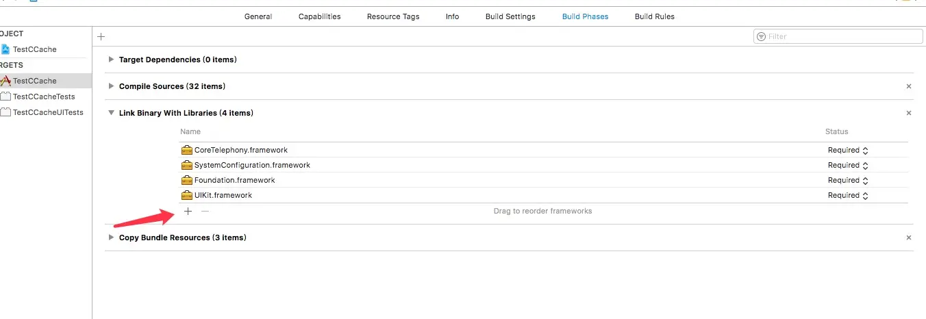 同时, 你还需要手动链接你所用到的framework, 因为我们已经关闭了这个选项.