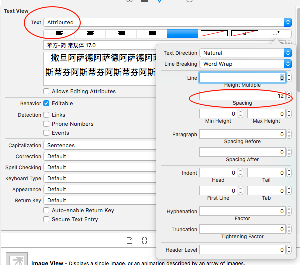 最后没办法,改成可视化的textView,调整行距的属性,字间距就没办法了,谁有好办法可以教教我