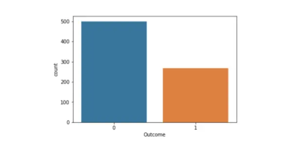 “输出”就是我们将要预测的特征,0 表示非糖尿病,1 表示糖尿病。在这 768 个数据点中,500 个被标记为 0,268 个被标记为 1: