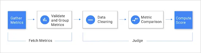 Datadog或者Netflix的内部工具比如Atlas。接下来Kayenta从源头拿到指标数据,创建一对对照/实现组的时间序列并且调用一个Canary Judge。Canary Judge会运行统计测试,单独评估每一个参数,然后返回一个范围在0-100的总分,总分是基于预先设置好的指标重要度算得的。基于用户的配置,分数可以被归类成“成功”,“模棱两可”或者“失败”。成功会把canary继续往生产环境部署,模棱两可分会触发人工审核逻辑,失败触发回滚。