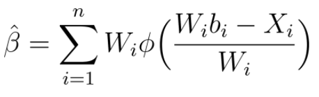 但考虑到aᵢ 和 σᵢ² 都是通常是未知的,我们使用测量值Xᵢ 和 W ᵢ(Xᵢ 的标准差)来代替它们来得到选择偏差的估测值: