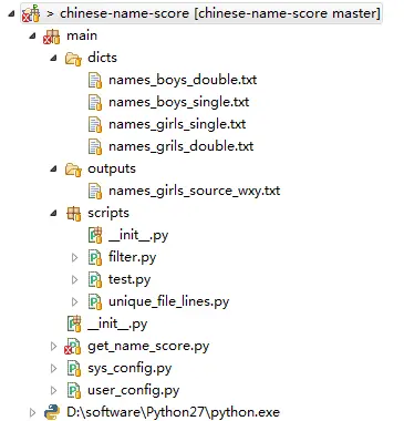 /chinese-name-score/main/sys_config.py 程序的系统配置,包含爬取得目标URL、词典文件路径