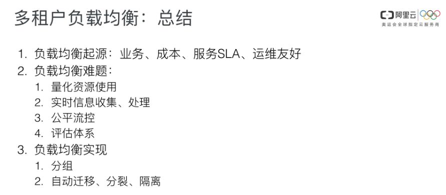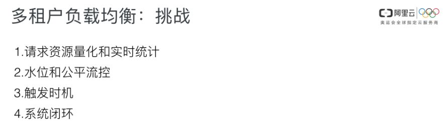 整体来看,负载均衡的触发时机一是某台机器发生了流控,二是租户SLA低于指定的阈值,三是资源利用不均衡,这三个问题的解决难度是逐步增加的。尤其是第三个,因为资源有多种,让各个资源利用率都取得均衡是很困难的事情。