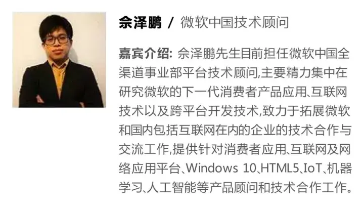 微软中国技术顾问佘泽鹏为我们分享微软如何利用人工智能以及云平台打造智能机器人。