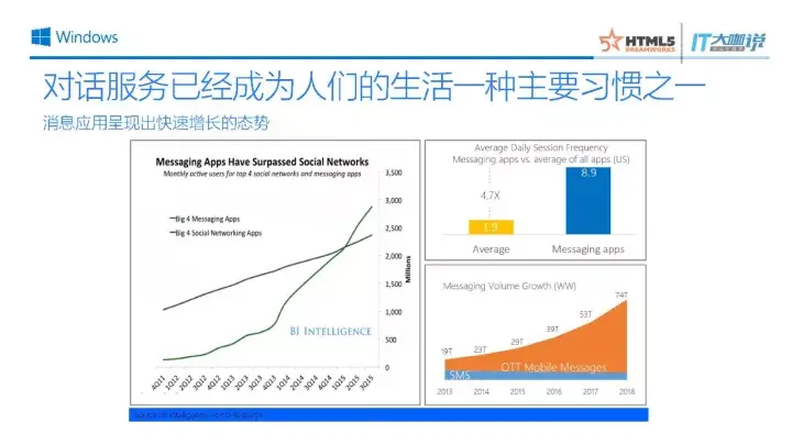 现在已经有很多消息类的应用都呈现一种快速增长的趋势,在这个情况下,微软提出我们现在是在“对话即平台”的时代。