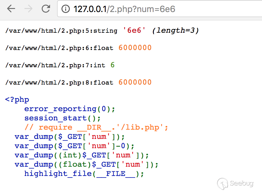 我的感觉是这应该是php的一个bug。同一个字符串,转换成int型和float型有着两种解释。正常的逻辑应该是(int)’6e6’ = (int)(float)’6e6’。这样才比较符合正常的一个理解逻辑。