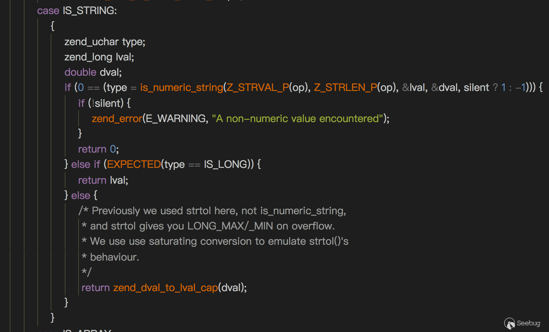 case IS_LONG: