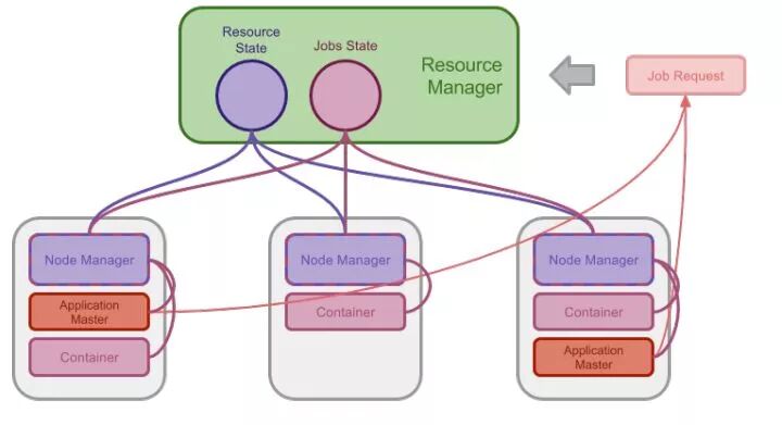 ApplicationMaster 启动的 Job 也会由 ResourceMaster 进行监控,其启动所需的本地资源和运算资源都由 ResourceMaster 负责分配并通知 NodeManager 具体执行。