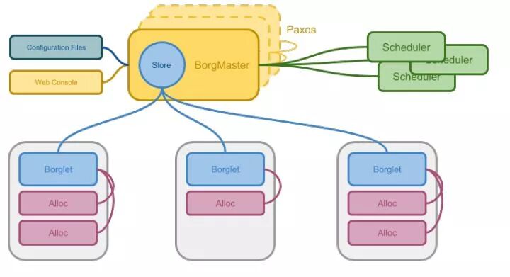 一些文章认为 Borg 属于集中式调度器,但笔者认为,随着时间的推移,Borg / Kubernetes 已经将诸多调度器的功能剥离为独立的服务,因此更接近共享状态调度器。