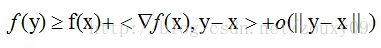 在直观的说明强凸之前,我们先看看普通的凸是怎样的。假设我们让f在x的地方做一阶泰勒近似(一阶泰勒展开忘了吗?f(x)=f(a)+f'(a)(x-a)+o(||x-a||).):