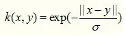 指数核函数就是高斯核函数的变种,它仅仅是将向量之间的L2距离调整为L1距离,这样改动会对参数的依赖性降低,但是适用范围相对狭窄。