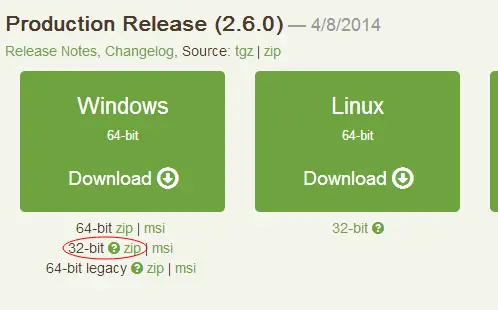 去mongodb的官网www.mongodb.org/downloads下载32bit的包