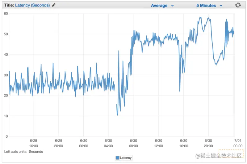 我们只是避免了这个问题,并最终开始倒计时,直到我们的系统死亡。在我们部署这个有缺陷的版本后,我们的延迟率以不变的速度持续增长。