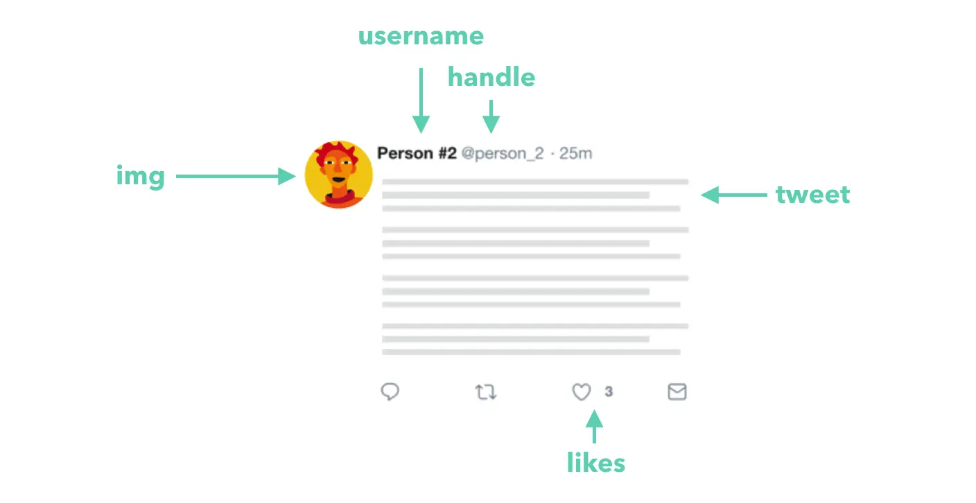 不管tweet对象中有多少条信息,我们的设置将总是以我们所期望的相同标记渲染tweet中的每条信息。