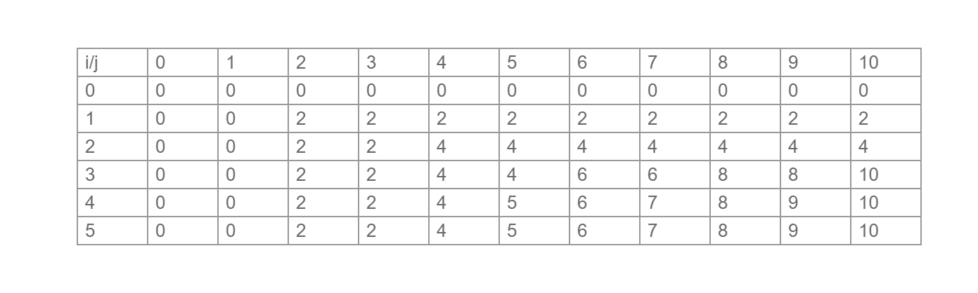 如 f[5][10]=max(f[4][6]+w[5],f[4][10])