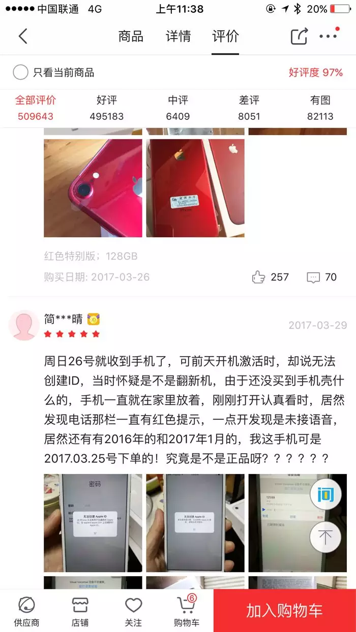 打开任意一个商品,如iPhone,然后打开它的商品评论页面,如下图示。