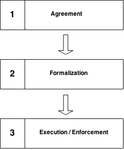 协定是一个完全的理想情况,从它在正式系统中的实施中抽象而来。当然,事实上这是一个脆弱的抽象。在法律系统中,在许多情况下,具有法律约束力,不要求形成一个协议。与此相反,对智能合约来说,在许多情况下,在形式化以前,没有事前协定。